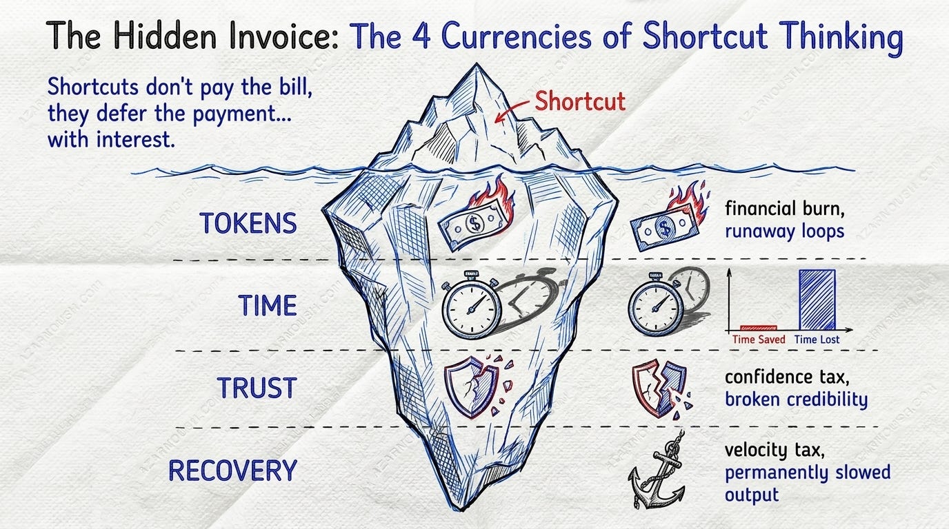 Deferred failure feels good at first because it creates a quick win: a demo, a commit, a temporary spike in output. But the system keeps the receipt, and payment usually comes at the worst time.