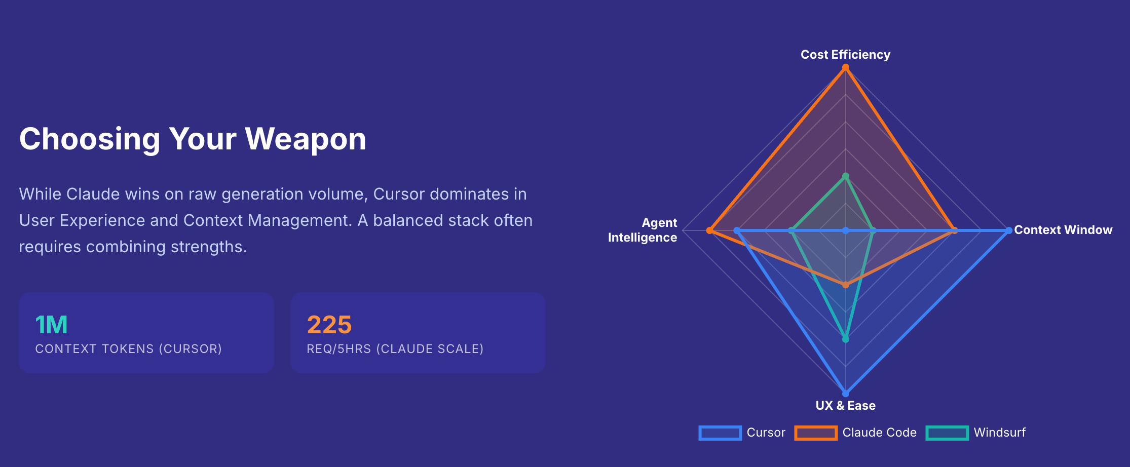 Windsurf: The budget-friendly backup. Good for scrappy setups, but lacks the high-end context power of Cursor.