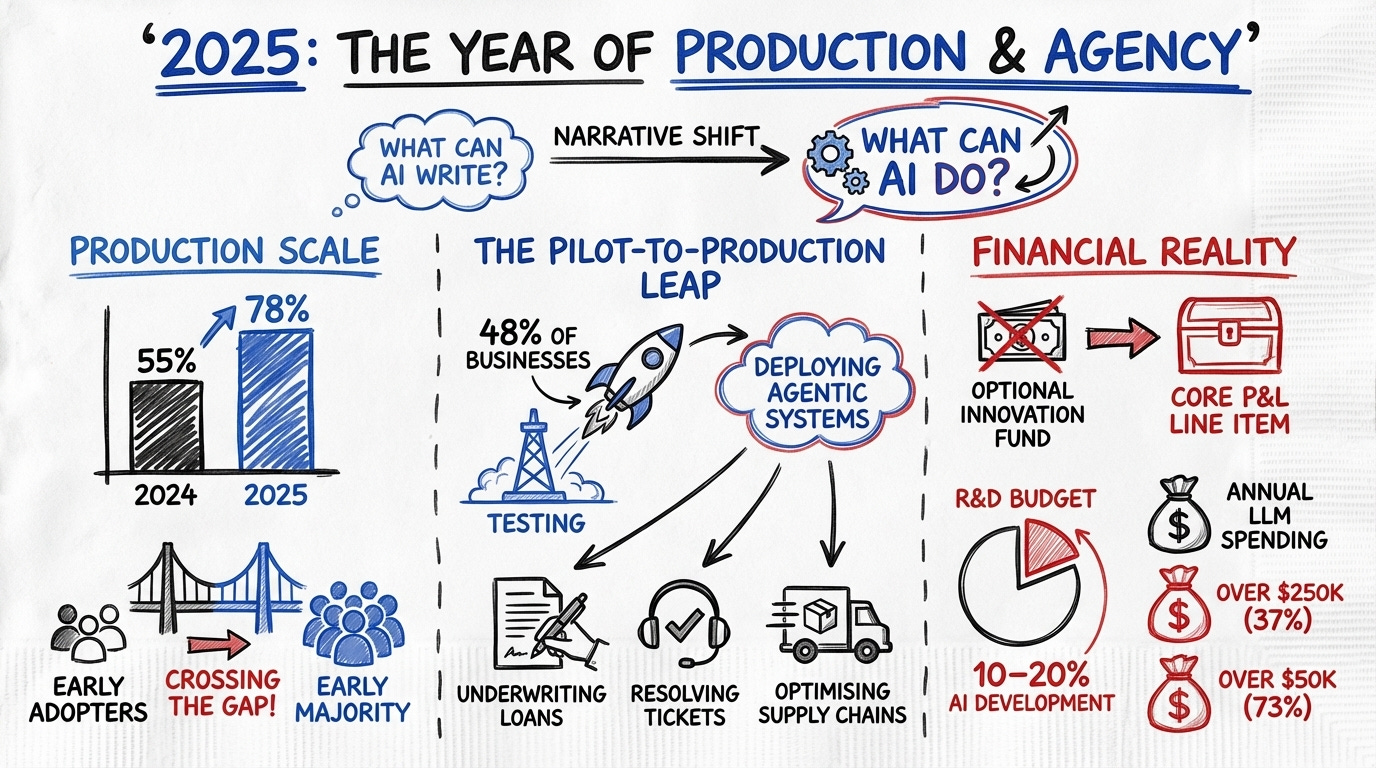 The Pilot-to-Production Leap: 48% of businesses moved beyond testing to deploying Agentic systems in production environments. These systems are not merely answering questions; they are underwriting loans, resolving customer service tickets, and optimising supply chains autonomously.
