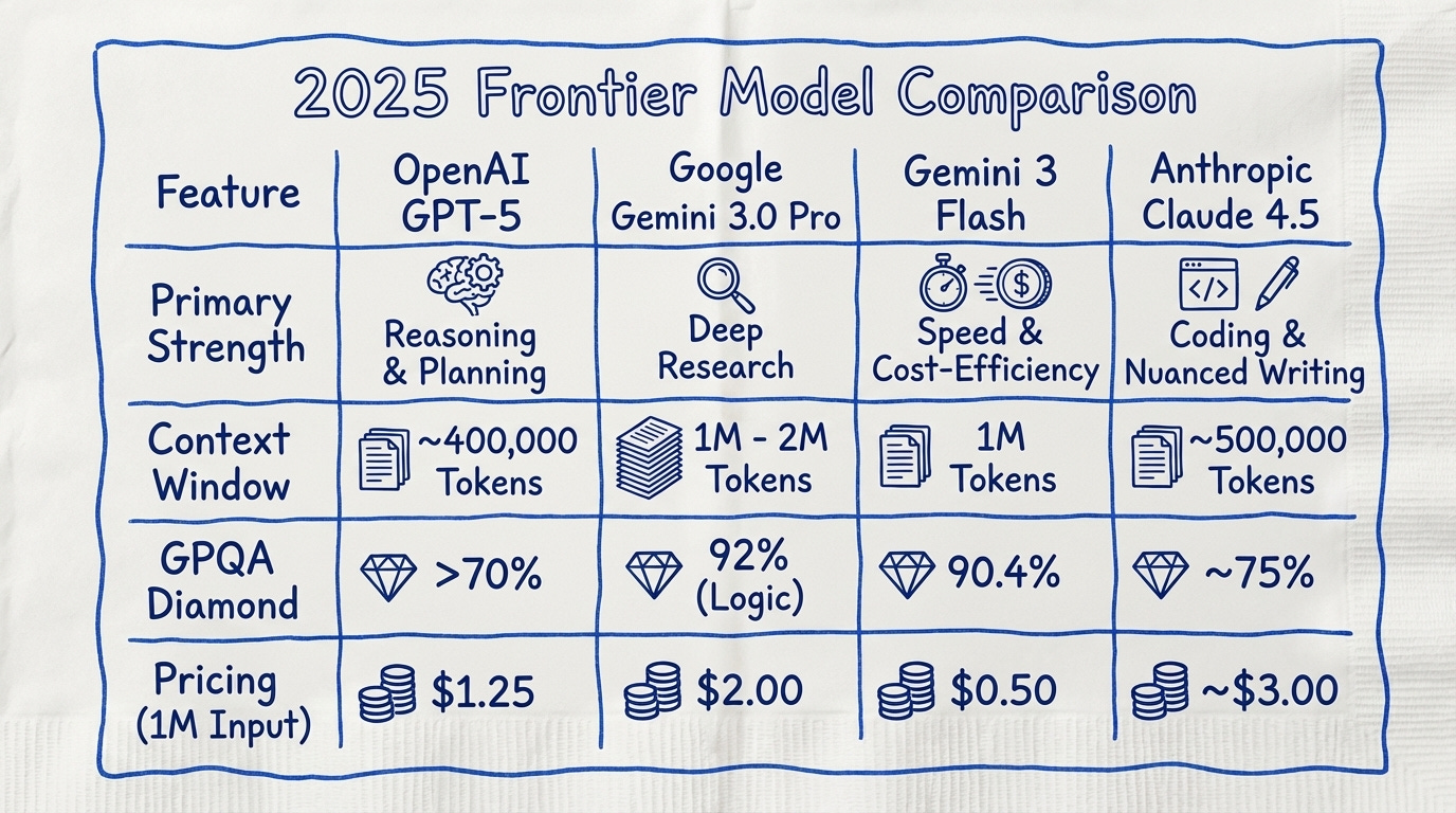 Google’s flagship Pro model remains the undisputed king of context. With a window scaling up to two million tokens, it can ingest entire legal libraries or vast codebase histories without breaking a sweat. Its “Deep Research Agent” capability allows it to plan and execute multi-step synthesis tasks, effectively replacing the data-gathering workflows of junior analysts.