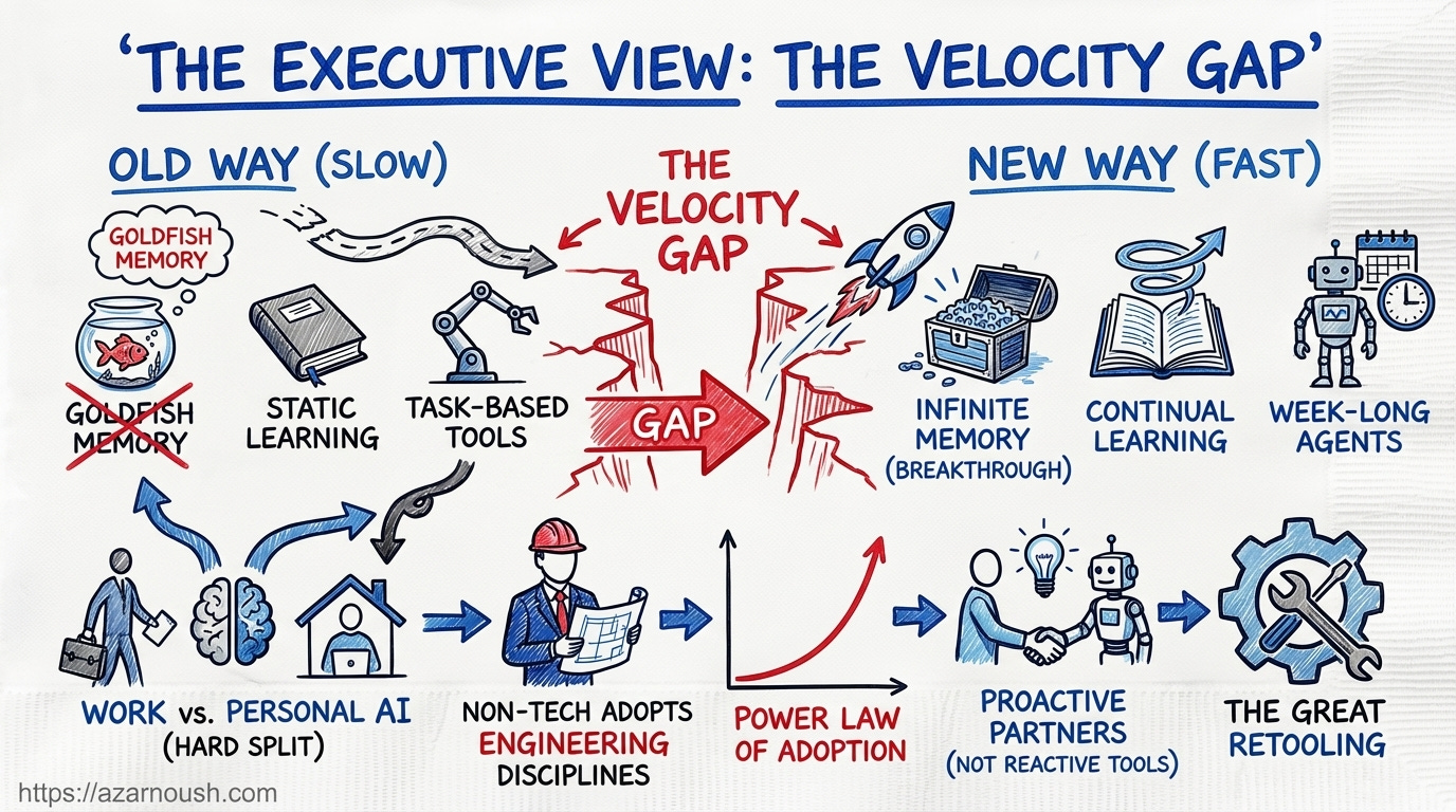 The concept of a “frozen” model, stuck with a knowledge cutoff from six months ago, is becoming obsolete. We will see a shift toward systems that learn as they go. Much like a new employee who starts rough but improves daily, software will become “sticky” and valuable not just because of its features, but because of its accumulated experience. A model that understands your specific business logic because it has watched you work for a week is infinitely more valuable than a smarter, generic model that knows nothing of your context.