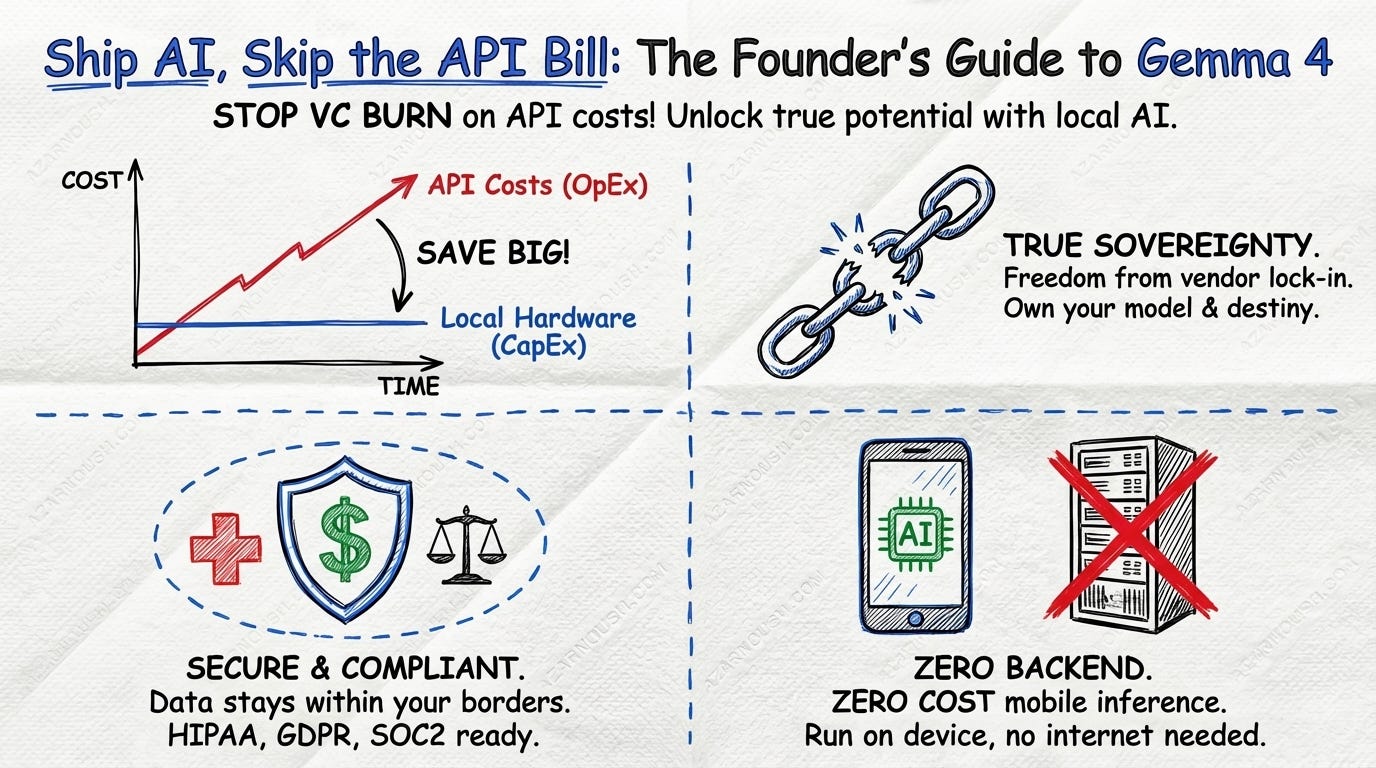 Short-term. Stop burning venture capital on per-token API costs. Every OpenAI API call is a line item that scales linearly with user growth. Every Google Cloud AI request is a dependency on a pricing schedule you do not control. Gemma 4 lets you build, test, and deploy AI features on your own hardware from day one. The 26B MoE variant is the sweet spot: near-frontier quality at a fraction of the inference cost of equivalent API-based models. You own the model. You own the data. You own the economics.